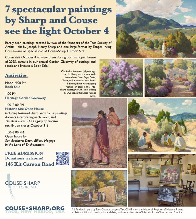 The Couse-Sharp Historic Site invites you to join us for our final Open House of 2025, 1-3 p.m. Saturday, October 4.